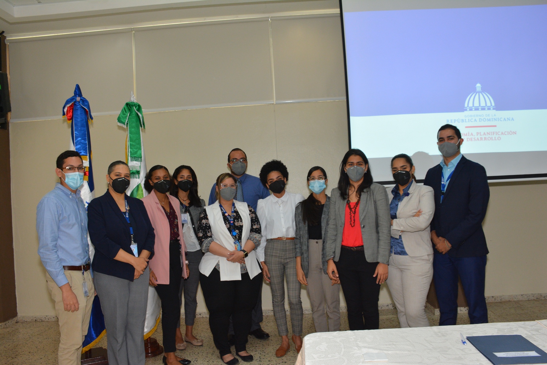Lety Melgen, directora de Análisis y Coordinación de la Cooperación Internacional, del ministerio de Economía, Planificación y Desarrollo, junto a su equipo de trabajo.
