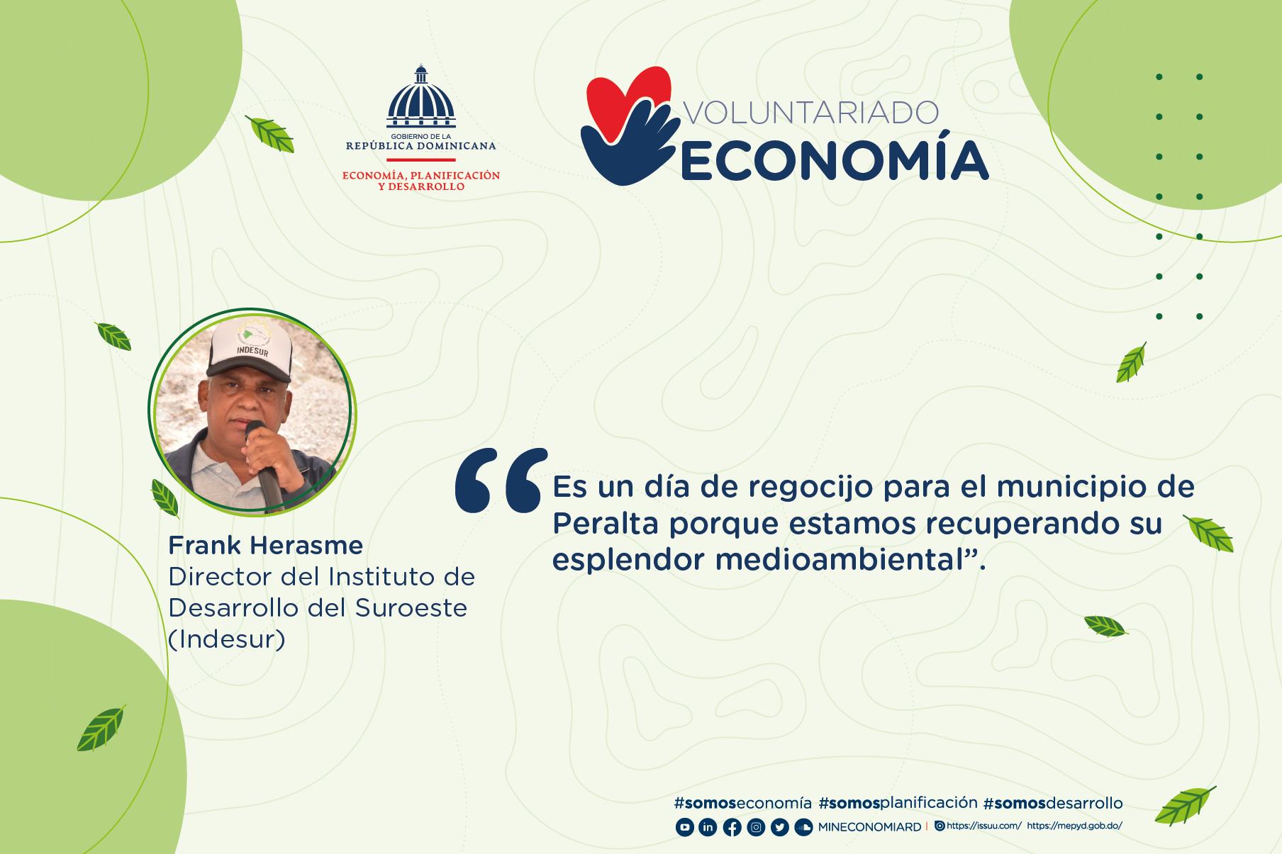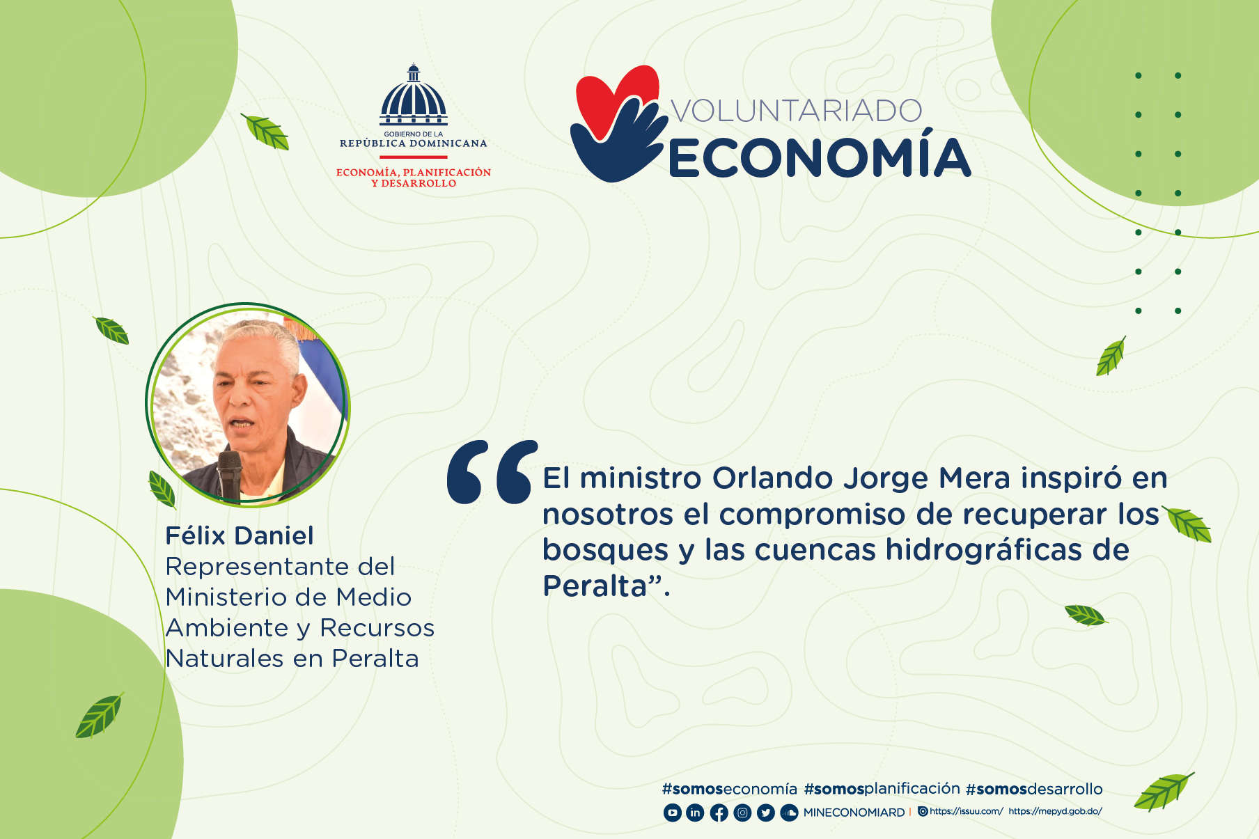 El director de Gabinete, Ranulfo Rodríguez, afirmó que la primera iniciativa del Voluntariado de Economía en esta zona de Peralta, Azua, no podía obviar la memoria del extinto ministro de Medio Ambiente, Orlando Jorge Mera. “Sembramos en honor a su memoria en uno de los proyectos de nuestro amigo y compañero. Le seguimos dando continuidad a la eficiencia y la buena voluntad de nuestros querido Jorge Mera”, precisó Rodríguez.